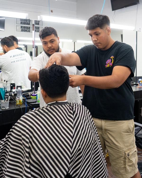As local barbers who built our careers from the ground up, we know the value of skill, community, and accessibility. That’s why we’ve created a program that not only trains the next generation but also connects them with real clients seeking affordable barbers and quality services. We’ve channeled our expertise into a school that empowers future professionals, blending time-tested techniques with modern styles to prepare students for an ever-evolving industry. Join us and become part of a brotherhood rooted in excellence, community, and innovation.